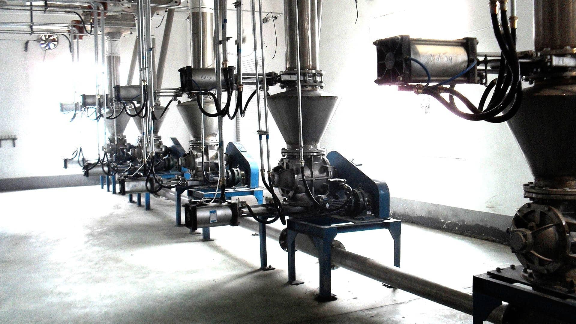 大豆蛋白粉適用于氣力輸送,由于其顆粒細小、密度低、流動性佳且無明顯粘結性,符合粉狀物料對氣力輸送的要求,且密閉輸送質(zhì)量優(yōu)良。氣力輸送利用壓縮空氣或真空作為動力源,在密閉管道中形成氣流帶動物料,并通過分離器實現(xiàn)氣固分離。根據(jù)輸送壓力與動力形式,氣力輸送可分為負壓吸送式、正壓壓送式和混合式,而氣固混合濃度多采用稀相輸送方式。